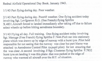 Rednal Operational Day Book January 1943
