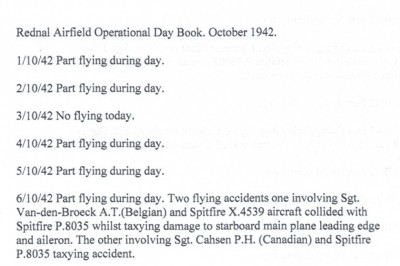 Rednal Operational Day Book October 1942